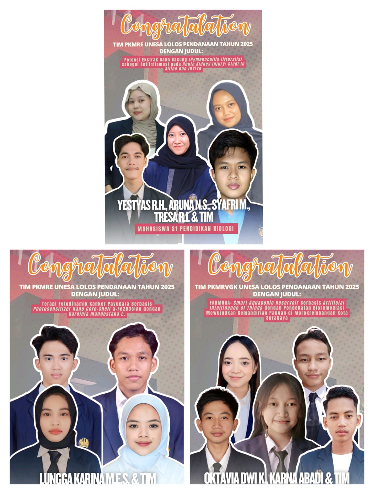 Surabaya, July 2025 – Another proud moment for the Biology Education Study Program at FMIPA UNESA! This time, three students from the class of 2023 made their mark